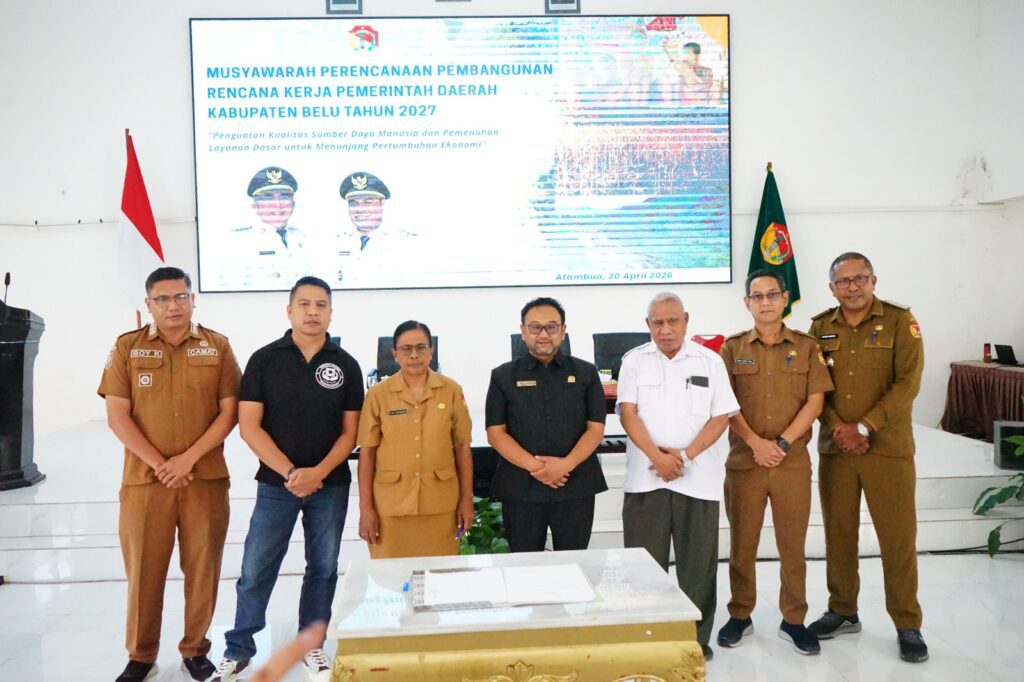 Kegiatan ini diakhiri dengan penandatanganan berita acara hasil kesepakatan Musrenbang RKPD Kabupaten Belu tahun 2027 oleh Ketua DPRD Belu, Pj. Sekreraris Daerah Belu, Staf Khusus Bidang Politik dan Pemerintahan, Asisten Perekonomian dan Administrasi Pembangunan, Kepala BP4D, Kepala Dinas Sosial, Pemberdayaan Masyarakat dan Desa, Camat Atambua Barat dan Ketua KUMPESA Rai Belu.