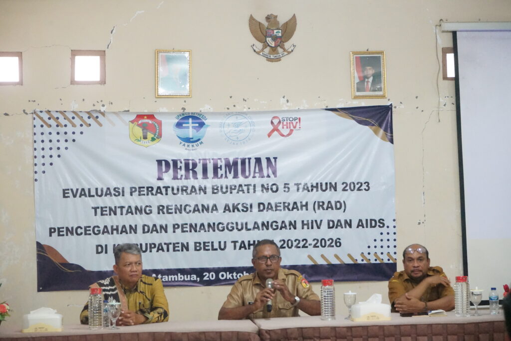 ATAMBUA – Pemerintah Kabupaten Belu melalui koordinasi lintas perangkat daerah bersama Unit Pengembangan Kesehatan Masyarakat/Community Development (UPKM/CD) Bethesda Yayasan Kristen untuk Kesehatan Umum (YAKKUM) melaksanakan kegiatan Evaluasi Peraturan Bupati Nomor 5 Tahun 2023 tentang Rencana Aksi Daerah (RAD) Pencegahan dan Penanggulangan HIV dan AIDS Tahun 2022–2026, yang telah berlangsung hari ini, Senin, (20/10/2025), di Aula BP4D Kabupaten Belu, Atambua. Kegiatan ini diawali dengan penandatanganan Nota Kesepahaman (MoU) antara Pemerintah Kabupaten Belu dan pihak UPKM/CD Bethesda YAKKUM, yang dilaksanakan di Ruang Kerja Bupati Belu, sebagai bentuk komitmen bersama dalam memperkuat sinergi pencegahan dan penanggulangan HIV/AIDS di wilayah Kabupaten Belu.