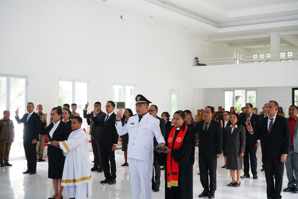 ATAMBUA,– Pemerintah Kabupaten Belu resmi melakukan penyegaran organisasi melalui Acara Pengambilan Sumpah Jabatan, Pelantikan dan Pengukuhan Pejabat Aparatur Sipil Negara Lingkup Pemerintah Kabupaten Belu diwarnai semangat baru yang digelar di di Gedung Wanita Betelalenok, Senin (22/12/2025).