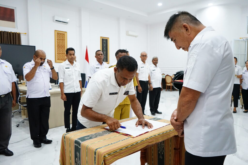 Atambua, – Bupati Belu Willybrodus Lay, SH resmi Mengambil Sumpah dan Melantik 9 Penjabat (PJ) Kepala Desa Induk dan Penjabat Kepala Desa Persiapan se-Kabupaten Belu yang di saksikan oleh para Pimpinan Perangkat Daerah Lingkup Kabupaten Belu, berlangsung di Ruang Bupati Belu, Rabu (11/2/2026).