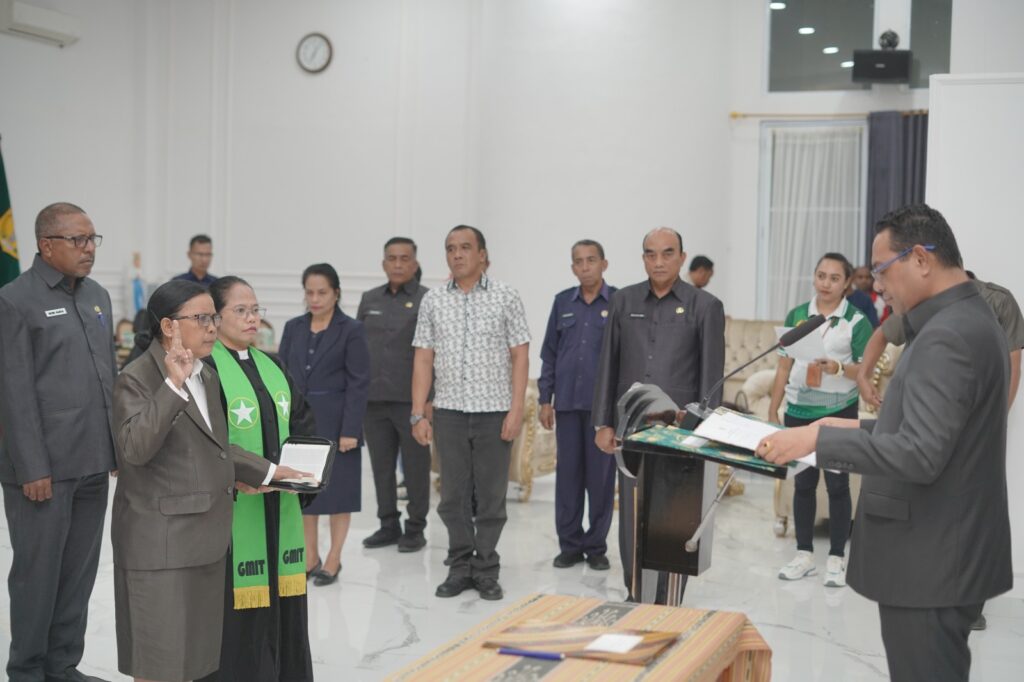 Atambua – Wakil Bupati Belu, Vicente Hornai Gonsalves, ST secara resmi melantik dan mengambil sumpah Elly Ch. Rambitan, SH sebagai Penjabat Sekretaris Daerah Kabupaten Belu, Jumat (30/01/2026) di ruang kerja Bupati Belu.