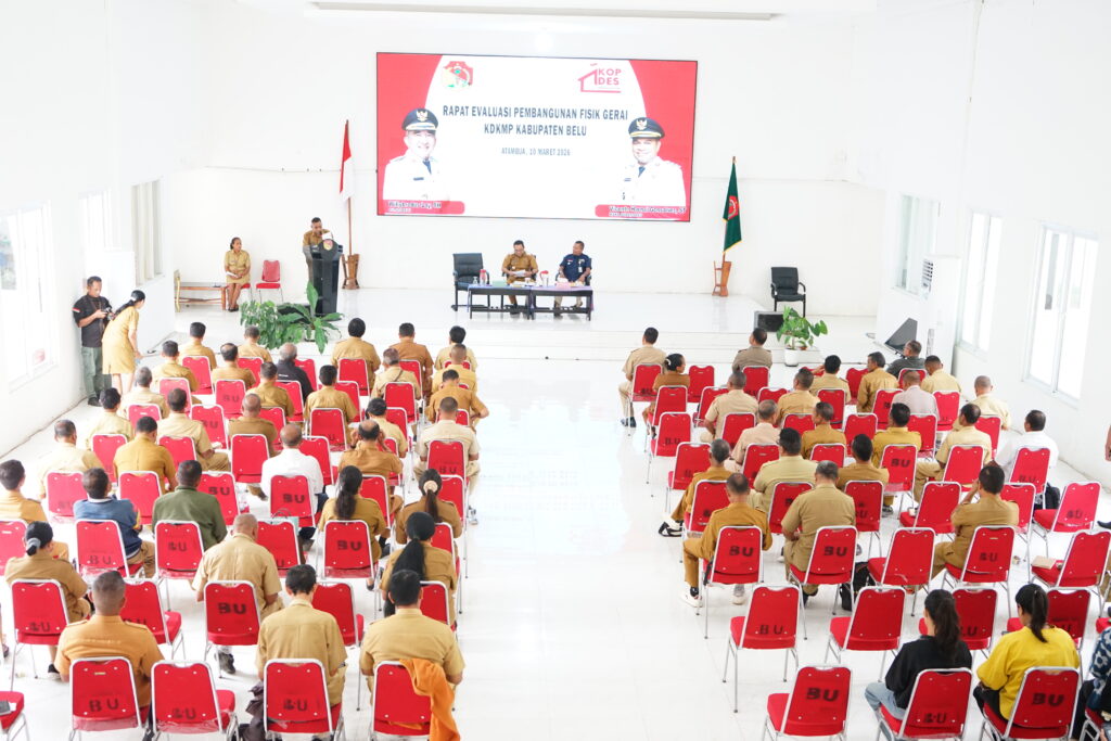 Atambua,- Dalam Rangka Mempercepat Pembangunan Fisik Gerai, Pergudangan dan Kelengkapan Koperasi Desa Kelurahan Merah Putih (KDKMP) sebagaimana amanat Instruksi Presiden Republik Indonesia Nomor 17 Tahun 2025 tentang Percepatan Pembangunan Fisik Gerai, Pergudangan dan Kelengkapan Koperasi Desa Kelurahan Merah Putih (KDKMP) di Kabupaten Belu, Wakil Bupati Belu Vicente Hornai Gonsalves, ST, Memimpin Rapat Evaluasi Pembangunan Fisik Gerai Koperasi Desa Kelurahan Merah Putih (KDKMP) Kabupaten Belu, yang berlangsung di Gedung Betelalenok, Selasa (10/03/2026).